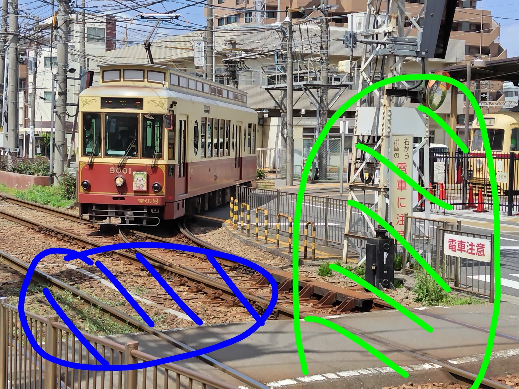 路面電車(都電9000形)本体の描写は必須です。無理のない範囲で描写をお願いします。