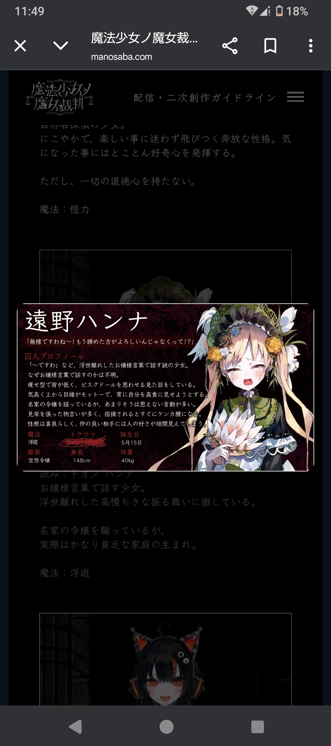 キャラクター :遠野ハンナ(まのさば)