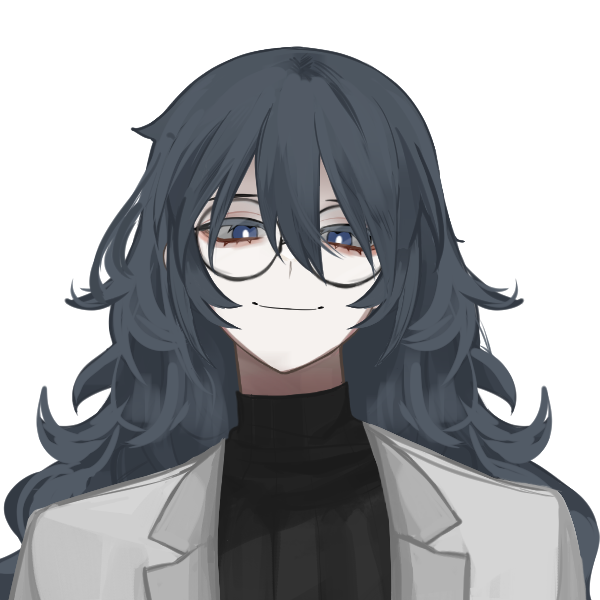 服装:フレームの大き目な眼鏡着用。タートルネックのセーターに白衣を羽織っているイメージですが、服装に拘りはないので構図や色に合わせて好きにしていただいて構いません。
