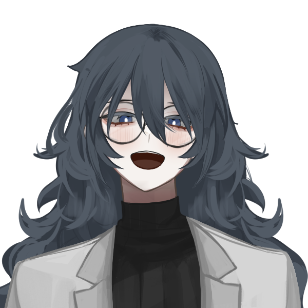 瞳:髪色と同じく深い青色。たれ目で少し眠たそうに見える。