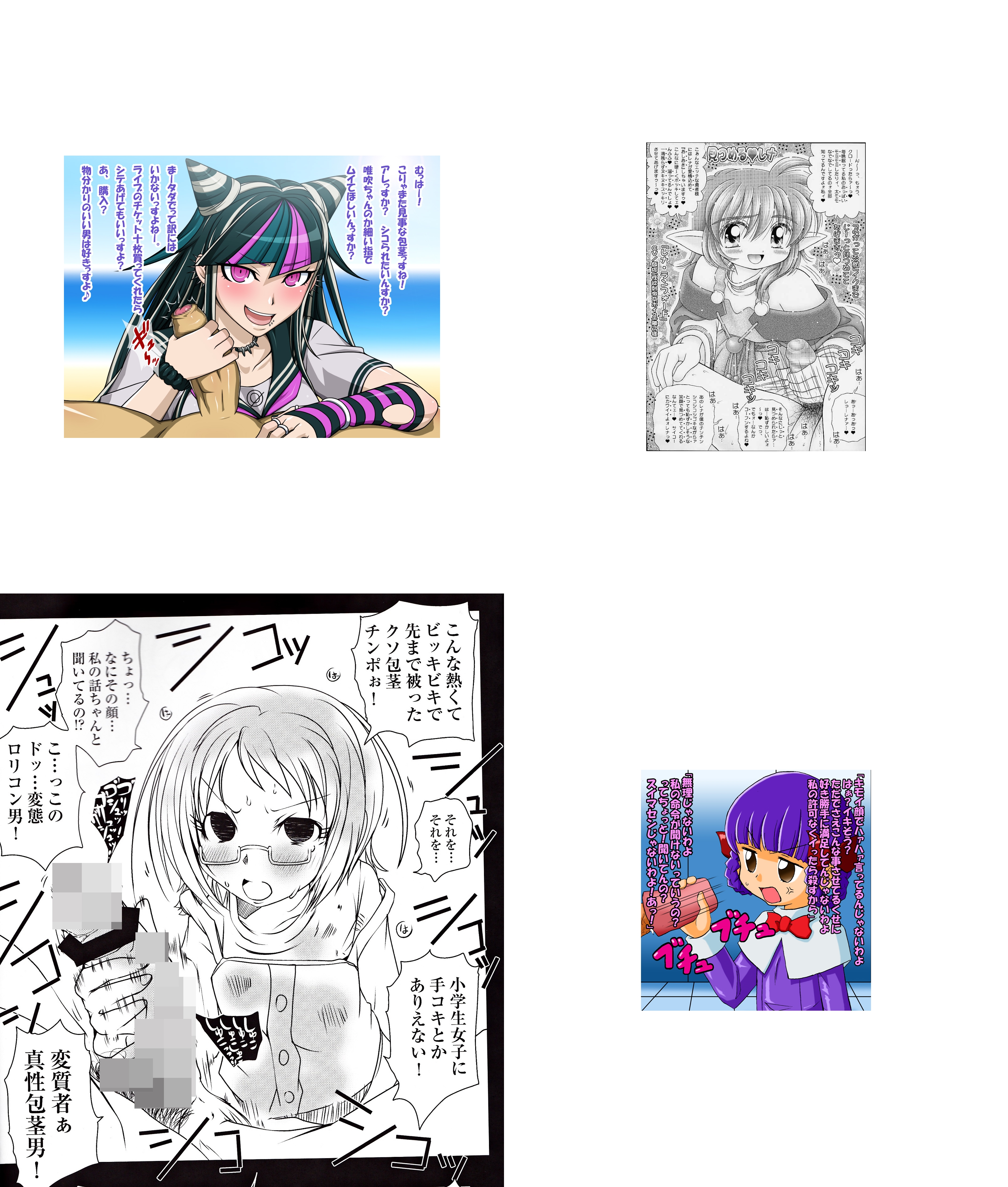 ・台詞「何?まさかこんな皮を被ったチンポでSEXしようとしてたの?」「どうせその歳まで童貞…ていうか、ろくに女の子と話した事ないでしょう?」「あなたの姿を見ればすぐ分かるわ」「デブで臭くてオタクっぽい、女性に好かれる要素0ですものね」「どうせ普段からこの無駄にでっかいチンポ一人でシゴきまくって、ザーメン無駄打ちしてるんでしょう?」「ちゃんと中まで洗ってる?こうしてシゴいてる間も、皮の先からチンカス臭がプンプン臭ってくるんだけど」「ビンビンに勃起しちゃって、嬉しい?○学生にチンポ手コキしてもらうの」「嬉しいわよね?SEX目的で○学生誘拐するような変態ロリコンなんだから」「なんとか言いなさいよ!この真性包茎野郎!!」